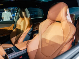 Không gian phía sau sang trọng với chất liệu da Nappa được chọn lọc thủ công, gỗ châu Âu và bảng điều khiển trung tâm sang trọng bậc nhất.